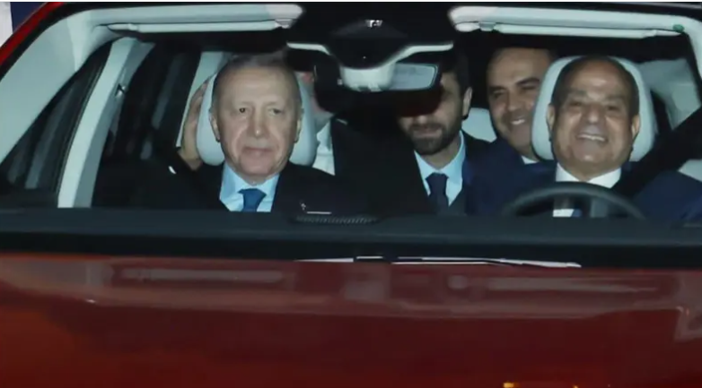 أردوغان يهدي السيسي سيارة كهربائية والأخير يقودها
