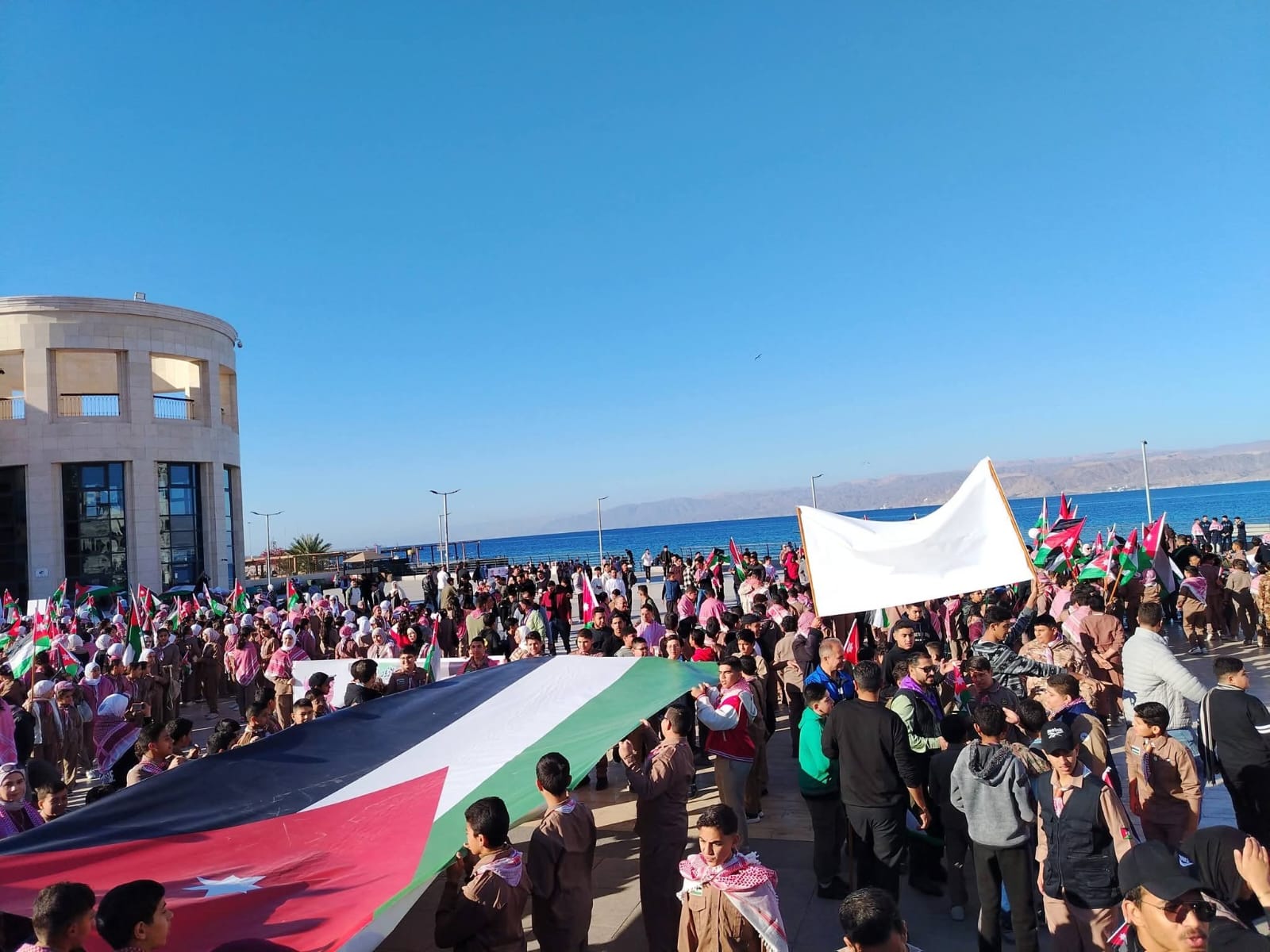 وأكد محافظ العقبة أيمن العوايشة أن هذه المسيرة الوطنية جسدت أسمى معاني الولاء والانتماء، وشكّلت لوحة وطنية جامعة عبّرت عن العلاقة المتينة بين جلالة الملك وأبناء شعبه، مشيداً بالجهود الكبيرة التي بذلتها مديرية التربية والتعليم في محافظة العقبة، وقسم النشاطات التربوية، في تنظيم هذه الفعالية الوطنية المهيبة التي عكست الصورة الحضارية للمجتمع المحلي، ورسخت قيم الانتماء والاعتزاز بالوطن وقيادته.