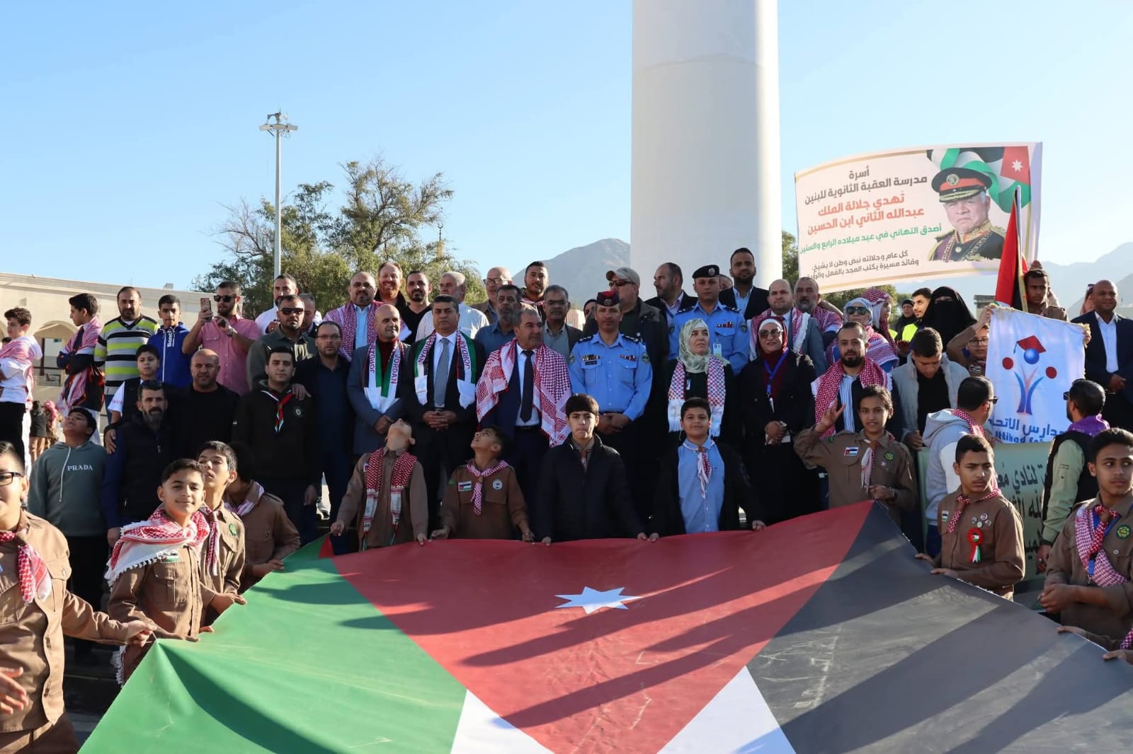 وانطلقت المسيرة من دوار الشريف الحسين بن علي باتجاه ساحة بيت الشريف الحسين بن علي عند سارية العلم، وسط أجواء وطنية احتفالية، علت خلالها الهتافات الوطنية والصيحات الكشفية، في تعبير صادق عن الفخر والاعتزاز بالقيادة الهاشمية، وتجديد الانتماء للوطن وقيادته.