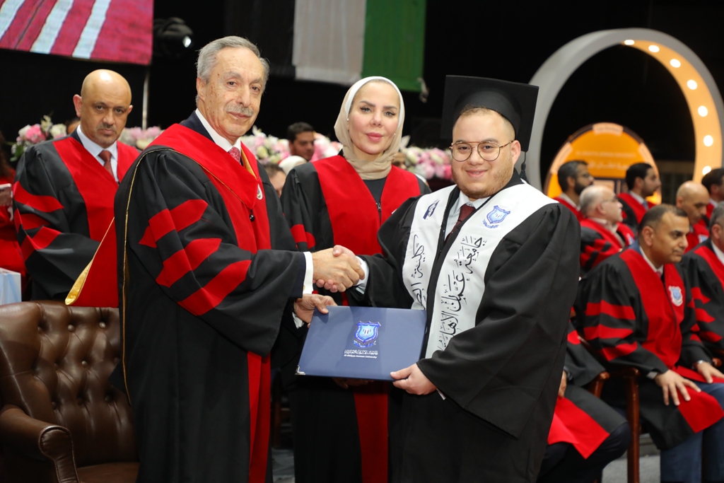 واختتم كلمته بالقول : إننا في جامعة عمّان الأهلية، ونحن نحتفي بتخريج فوجٍ جديد من أبنائنا وبناتنا، نؤكد فخرنا واعتزازنا بقيادتنا الهاشمية الحكيمة، وبالمواقف الوطنية المشرفة لصاحب الجلالة الملك عبد الله الثاني ابن الحسين، حفظه الله، والتي تجسّد إرادةً وطنيةً راسخة تعبّر عن وحدة الأردنيين على اختلاف أصولهم ومنابتهم.وفقنا الله جميعاً لخدمةِ جامعتِنا وخدمةِ أردننا الغالي في ظل حضرة صاحب الجلالة الهاشمية الملك عبد الله الثاني ابن الحسين وولي عهده الأمين.