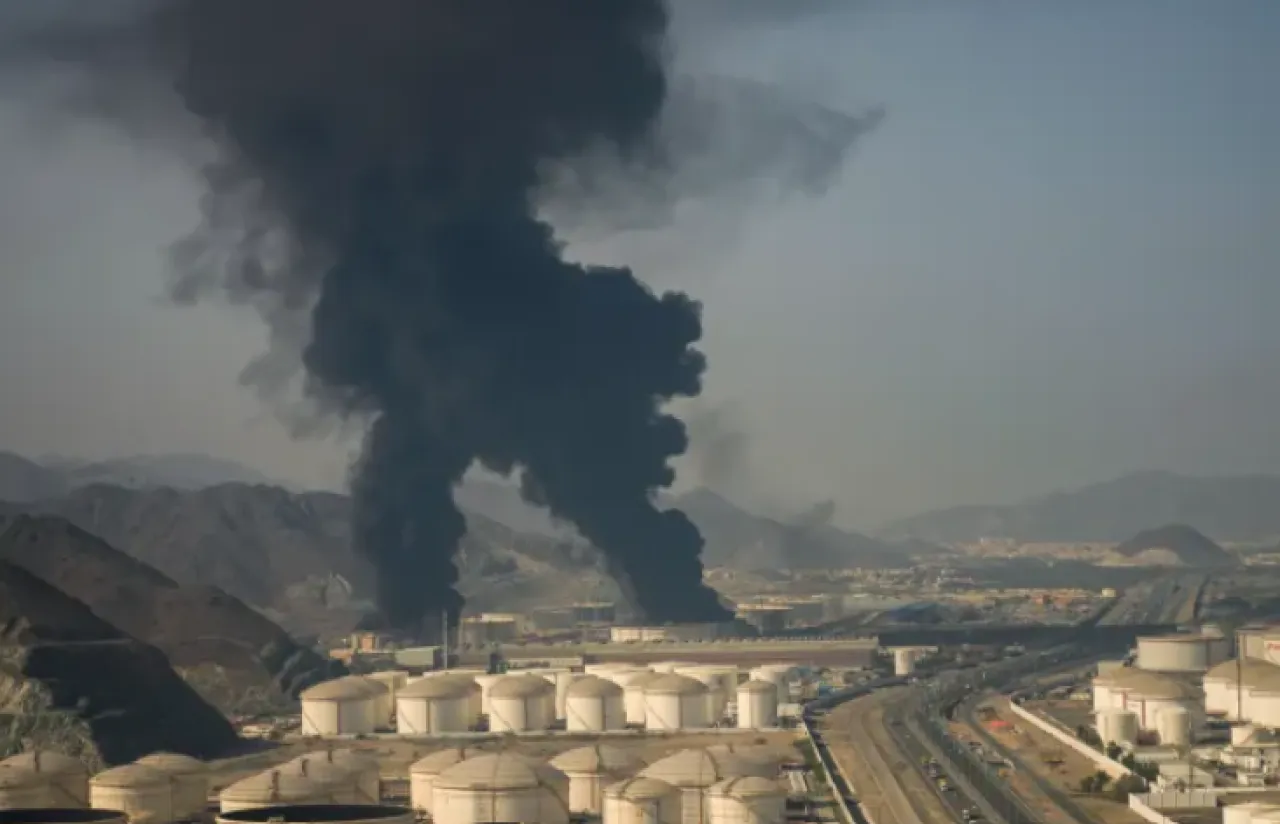 كما أعلن مكتب أبو ظبي الإعلامي، الليلة، السيطرة على حريق اندلع نتيجة استهداف مسيرة منشأة نفطية بمنطقة الرويس الثلاثاء الماضي.