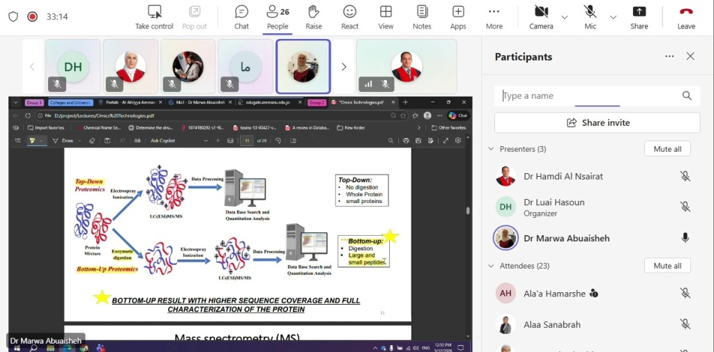 وقد تناولت الورشة شرحاً معمقاً لأحدث تقنيات قياس الطيف الكتلي (Mass Spectrometry)