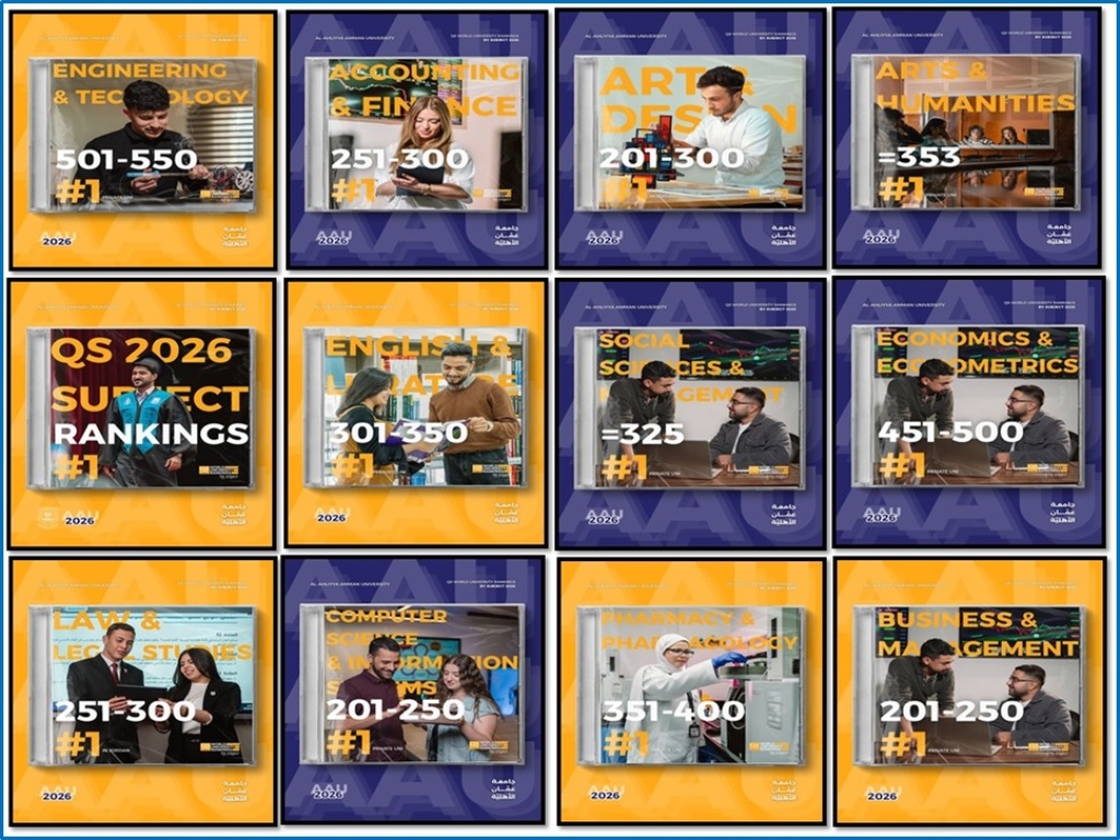 وكالة الناس – تواصل جامعة عمان الأهلية تعزيز مكانتها الأكاديمية عالميًا، حيث حققت نتائج متميزة في تصنيف QS العالمي للتخصصات لعام 2026.