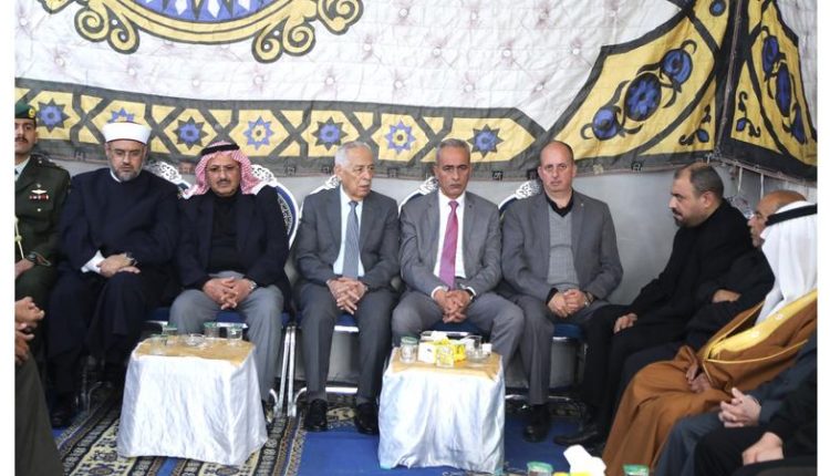 وكالة الناس – مندوبا عن جلالة الملك عبدالله الثاني وسمو الأمير الحسين بن عبدالله الثاني، ولي العهد، قدّم رئيس الديوان الملكي الهاشمي يوسف حسن العيسوي، اليوم الاثنين، واجب العزاء إلى عشيرة العلاونة بوفاة الدكتور عرفات علي العلاونة، مساعد مدير صحة إربد.