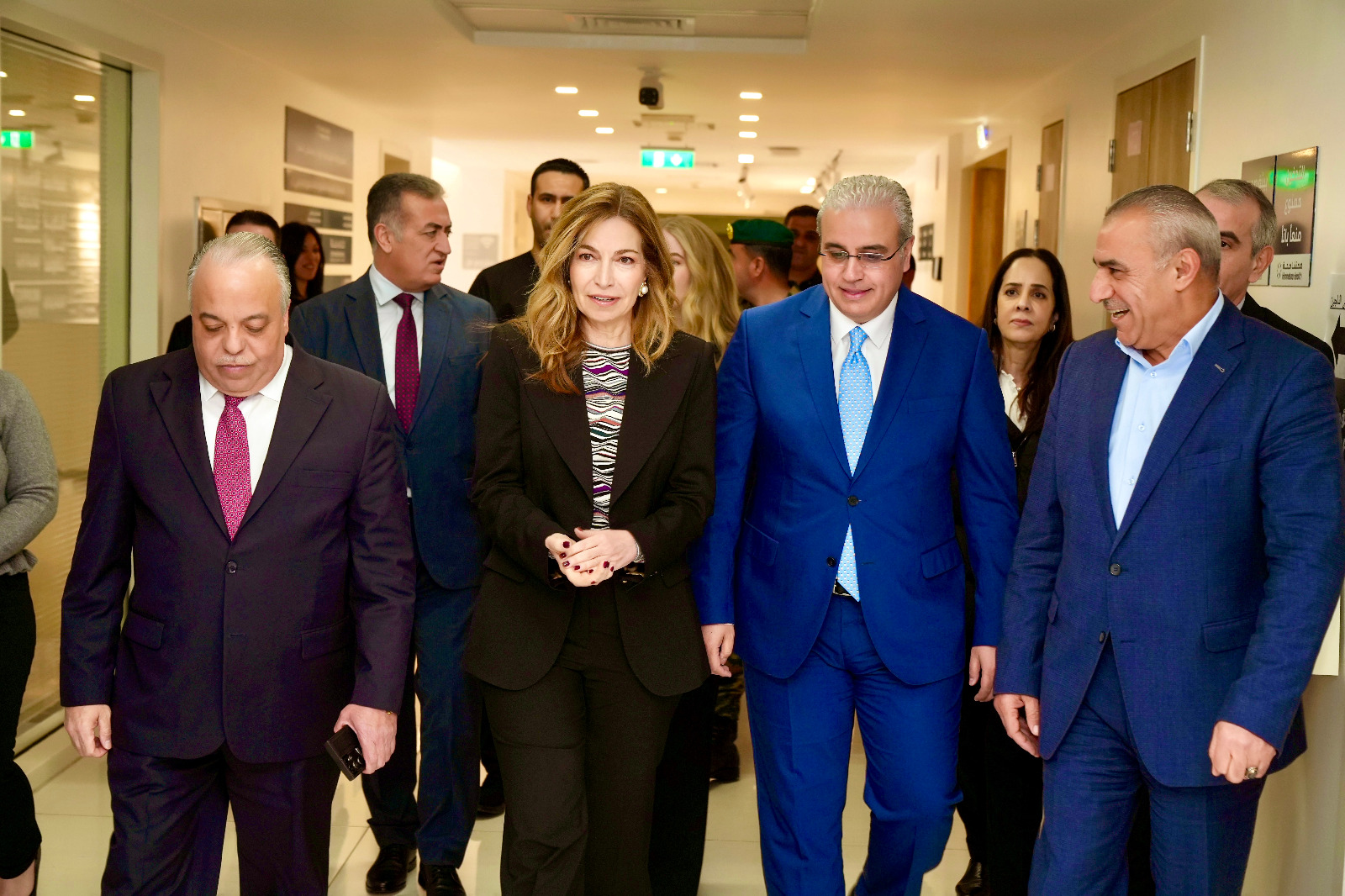 وكان في استقبال سموّ الأميرة وزير الصحة الدكتور إبراهيم البدور، ومدير عام مستشفيات البشير الدكتور علي العبداللات، كما رافقها في الزيارة الدكتور عاصم منصور مدير عام مركز الحسين للسرطان، والدكتور منذر الحوارات، مدير مركز سميح دروزة للأورام.