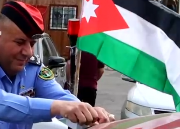 الأمن يباشر بلصق وتوزيع العلم الأردني على مركبات المواطنين