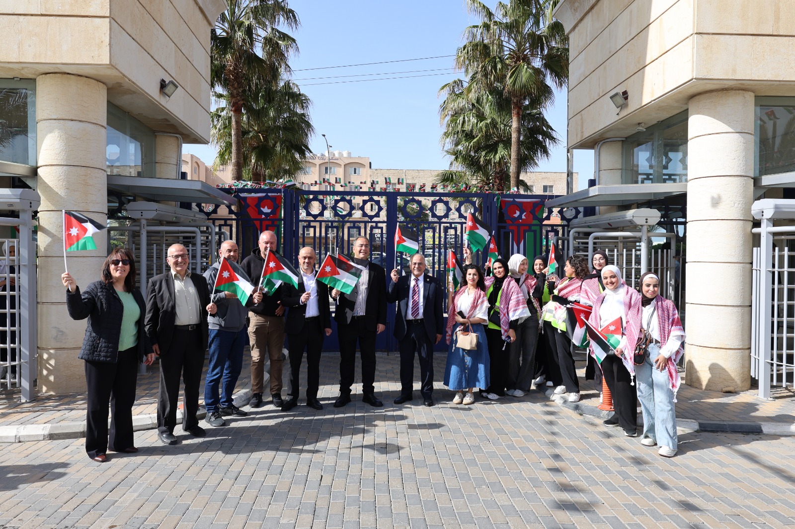 وانطلقت الفعاليات منذ ساعات صباح اليوم الخميس 16-4-2026، حيث ازدانت مداخل الجامعة وساحاتها بالأعلام الأردنية، فيما جرى توزيع الأعلام على الحضور، بالتزامن مع بث الأناشيد الوطنية التي أضفت طابعاً حماسياً عبّر عن الفخر والاعتزاز بهذه المناسبة.