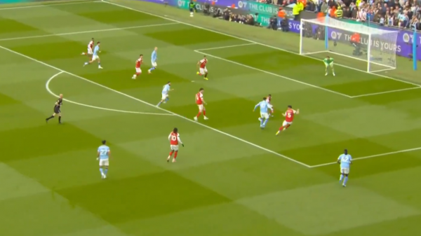 واصل السيتي سيطرته بعد الهدف، مع محاولات من دوكو الذي سدد بجوار المرمى، في حين حاول آرسنال العودة عبر الكرات الثابتة، وكاد جابرييل أن يسجل برأسية اصطدمت بالقائم، قبل أن يبعد الدفاع الكرة.