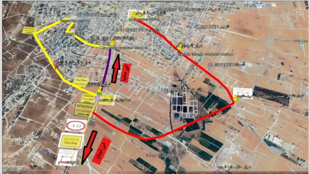 وأوضحت الوزارة في بيان، الثلاثاء، أن تنفيذ المشروع يتطلب إجراء إغلاقات جزئية أو كلية في بعض المقاطع الحيوية، وتحديداً في المنطقة الواقعة بين دوار البجالي وتقاطع شارع الوطن العربي مع الطريق الملوكي عند مثلث مدارس الإخلاء، حيث جرى اعتماد مخطط مروري متكامل لضمان استمرارية حركة السير وتوجيه المركبات نحو مسارات بديلة جُهزت بكافة الإشارات التحذيرية والإرشادية اللازمة.