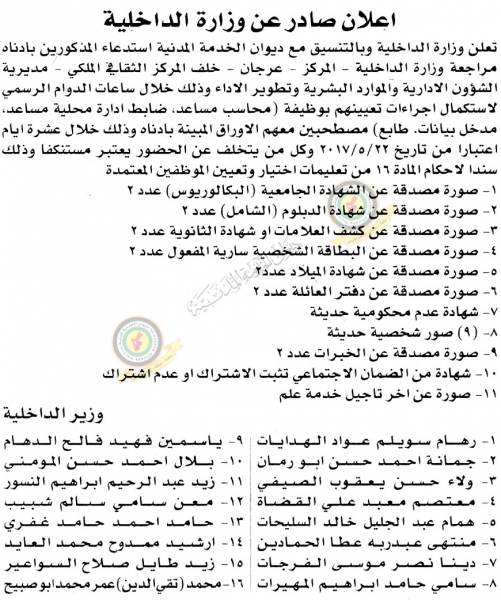 وبحسب ما نشره الديوان على الموقع الالكتروني، فإن كل من يتخلف عن الحضور يعتبر مستنكفا عن التعيين، داعيا إياهم لاحضار اثبات للشخصية.