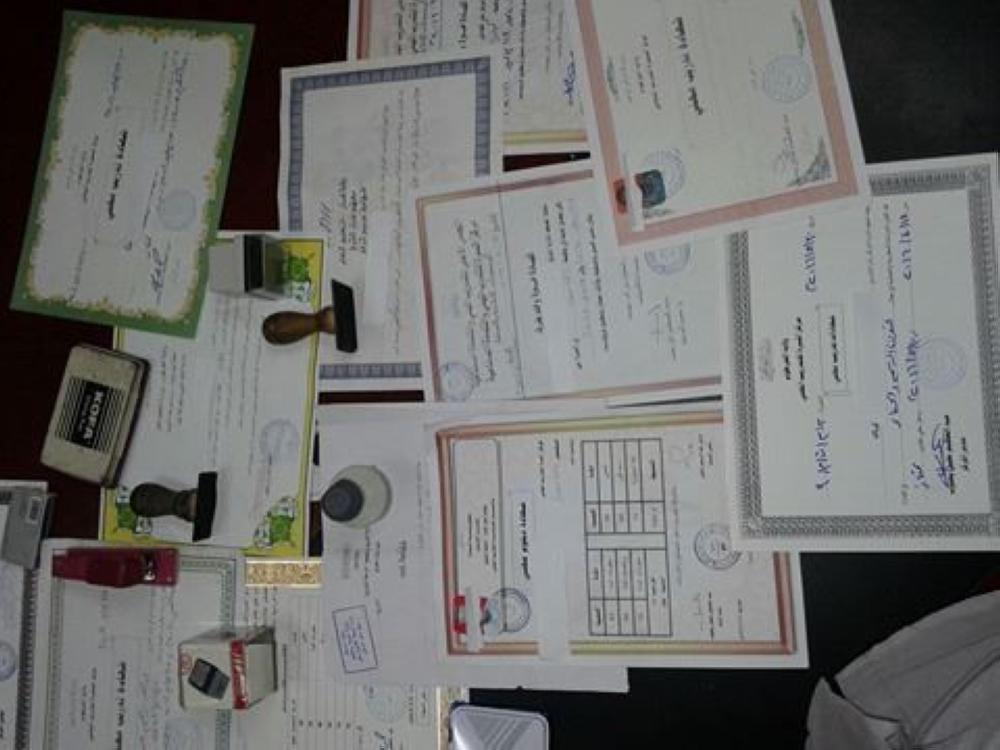 ضبط أشخاص يقومون بتزوير شهادات تدريبية وتعليمية