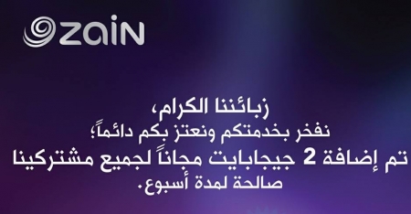 زين تصالح عملاءها بـ 2 جيجا انترنت “مجاناً”