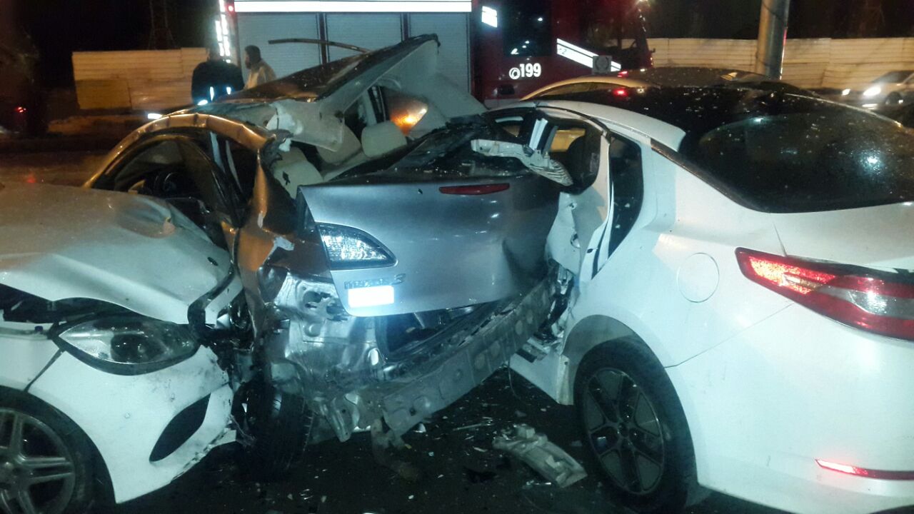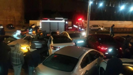3 اصابات بتصادم 10 مركبات على دوار المشاغل في عمان