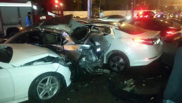 وكالة الناس – أصيب 3 أشخاص  برضوض مختلفة في الجسم، اثر حادث تصادم وقع ليل الجمعة / السبت بين 10 مركبات على دوار المشاغل باتجاه جسر الشفا في العاصمة عمان.