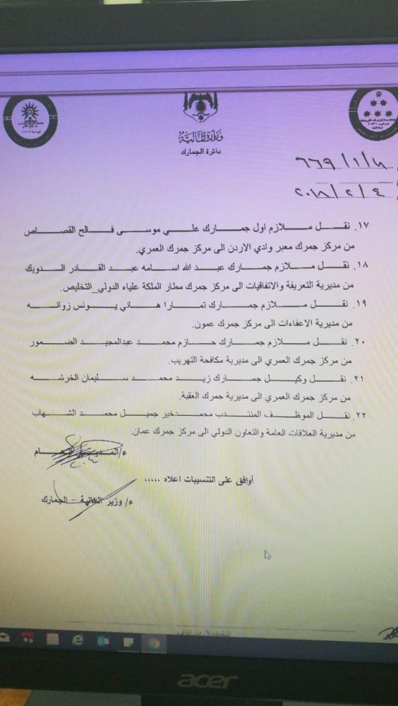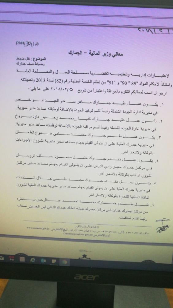 شاهد بالاسماء … تنقلات في دائرة الجمارك On فبراير 4, 2018 Share وكالة الناس – قرر مدير عام دائرة الجمارك العامة اللواء جمارك وضاح الحمود اجراء التنقلات التالية اعتبارا من 5-2-2018 .