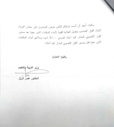 بالوثيقة …”نقابة المعلمين” تنصف أمناء المكتبات وتسترجع علاوتهم