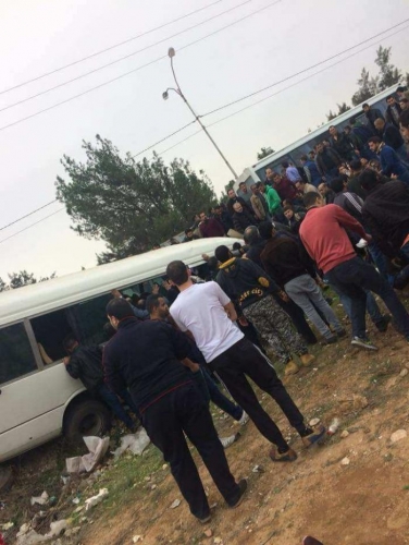 بالصور..اصابات عقب انقلاب باص على طريق الرمثا Last updated فبراير 5, 2018 Share وكالة الناس – وقع حادث سير لباص مقابل صرح الشهيد في الرمثا . ووفق شهود عيان ان الحادث تسبب بوقوع اصابات .وبين الشهود ان الجهات المعنية هرعت الى المكان ونقلت الاصابات الى المستشفى .