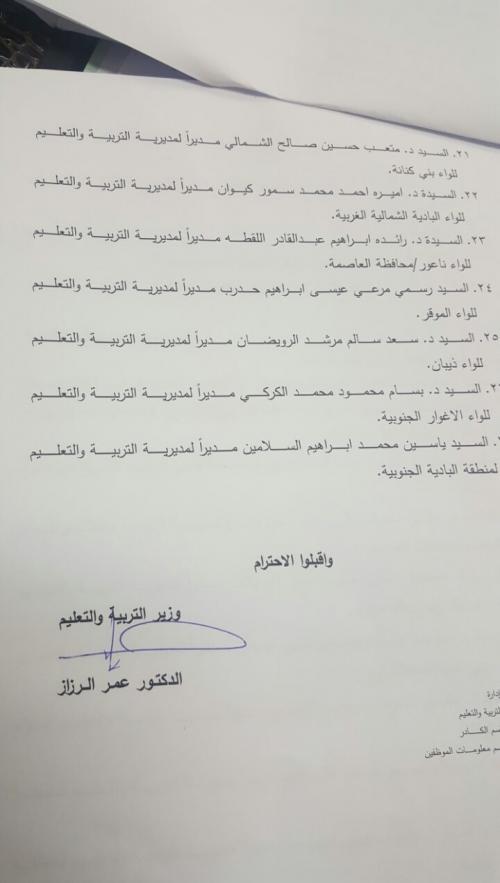 شاهد بالاسماء…تنقلات واسعة بين مدراء التربية