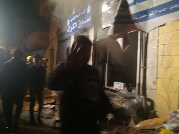الكرك: الامن يوقف مثيري شغب احرقوا اجزاء من “الاستهلاكية المدنية” ..صور