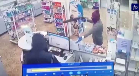 وأظهر فيديو اقدام شخصين على السطو على صديلية في منطقة الشميساني في العاصمة عمان، حيث هددا العاملون بالصيدلية بواسطة سلاح ناري.