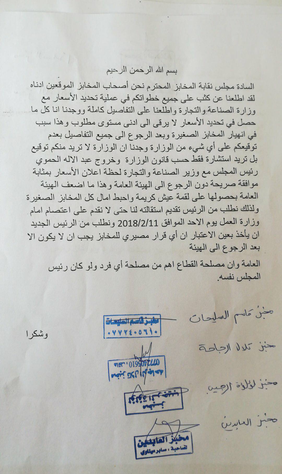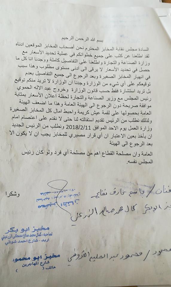 وأشار إلى أن “أصحاب المخابز الصغيرة اجتمعت ووقعت على عريضة تم رفعها إلى النقيب عبد الإله الحموي، تطالبه بالاستقالة لتمرير هذا القرار دون الرجوع إليهم”.