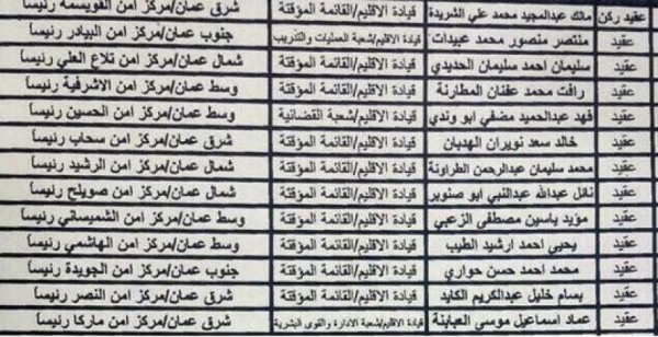 وقد باشر 13 عقیداً في الامن اعمالھم الخمیس كرؤساء مراكز أمنیة في العاصمة عمان.