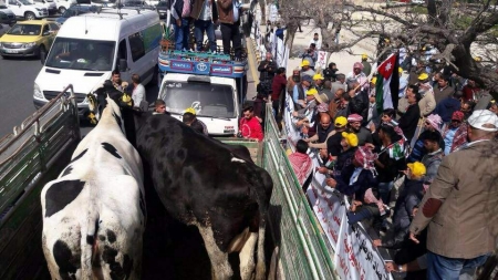وشدد الحجاحجة على ضرورة انقاذ القطاع الزراعي، لافتا إلى ان المزراعين يعتصمون امام مجلس النواب ليل نهار وجلبوا اليوم الاحد منتجاتهم من الابقار والدواجن.