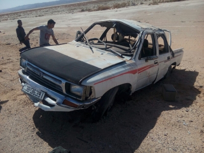 اصابة (4) اشخاص نتيجة حادث تدهور مركبة على طريق وادي عربه