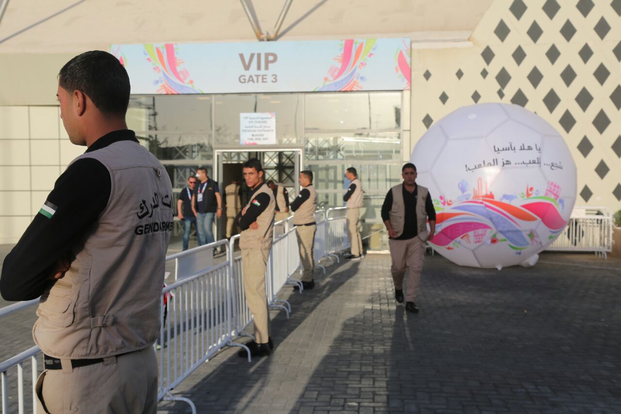 وجاء ذلك متطابقاً مع توجيهات اللواء الركن حسين الحواتمة، والذي شدد خلال جولة تفقدية قام بها قبل حفل افتتاح البطولة على المهنية والحزم في تنفيذ التعليمات الأمنية، مع مراعاة السلاسة في التعامل مع المواطنين، والزوار، وبما يعكس الصورة المشرقة عن الأردن.وحسب مصدر أمني من قوات الدرك، فإن جميع المشاركين من قوات الدرك ومن ضمنهم الدرك النسائي، والمرافقين الأمنيين مع الفرق والوفود، خضعوا لدورات متخصصة، في استراتيجيات، وخطط إدارة المنشآت الرياضية، والتعليمات الدولية والآسيوية في هذا المجال، وحاضر في هذه الدورات مجموعة من الخبراء والمختصين.