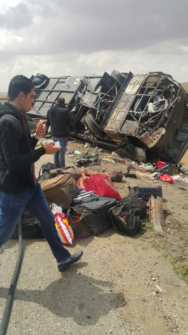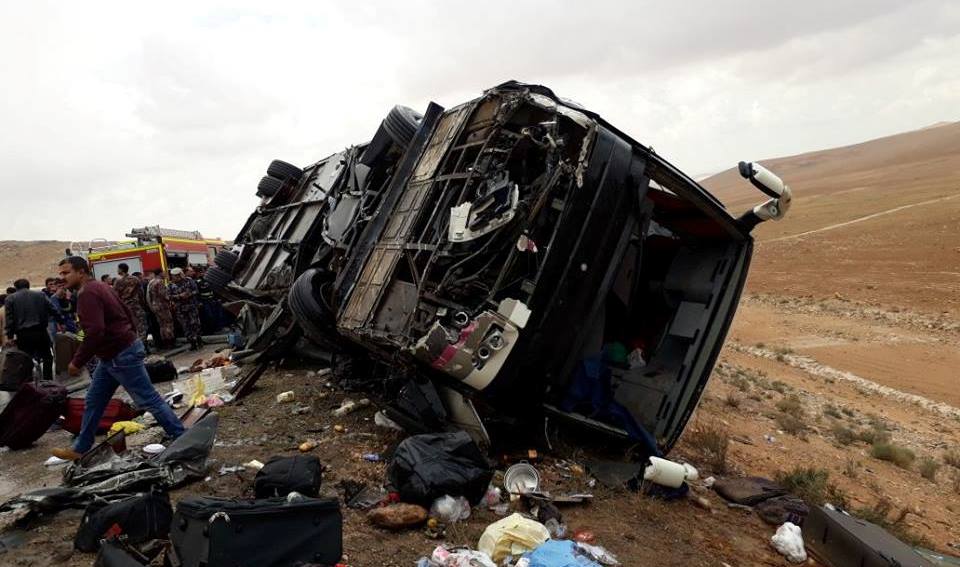وقال المصدر إن الحافلة تحمل لوحة غير أردني، وكانت محملة بـ 48 معتمرا من الجنسية الأردنية.