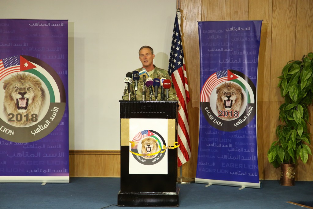 وكالة الناس – عُقد في قيادة مجموعة الملك عبدالله الثاني القوات الخاصة اليوم الأحد، مؤتمر صحفي أُعلن فيه عن بدء فعاليات تمرين الأسد المتأهب 2018, الذي سيتم تنفيذه هذا العام بين القوات المسلحة الأردنية والجانب الأمريكي الصديق, خلال الفترة من 16 ولغاية 26 نيسان الجاري.