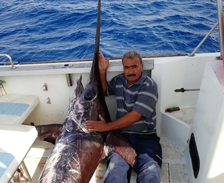عقباوي يصطاد سمكة فرس بوزن 153 كيلو