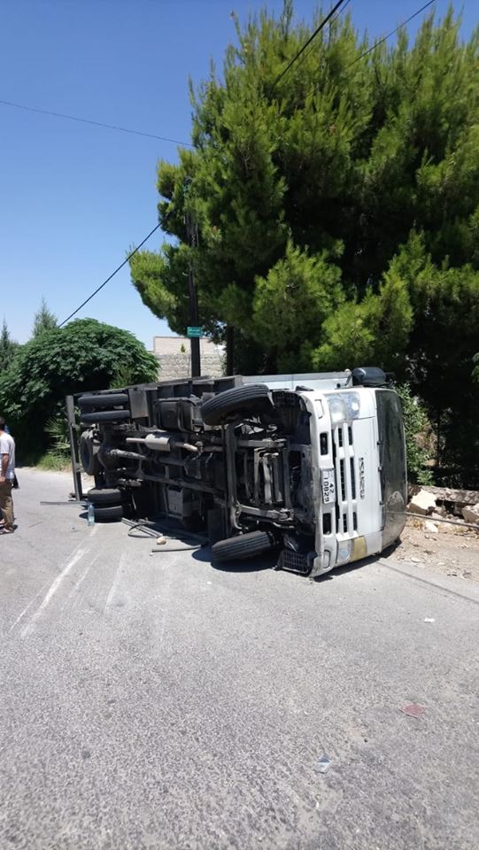 تدهور شاحنة في نزول ابو نصير نفق الروابده.. صور