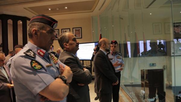 واستمع خلال زيارته الى ادارة العمليات والسيطرة الى الخدمات التي تقوم بها هذه الادارة وعلى مدار الساعة والتي انشائها عام (2005) وافتتحت تحت الرعاية الملكية السامية عام (2009) وتعتبر مركزا ً موحدا ً للجهود العملياتية للامن العام وترتبط مع جميع الاجهزة الامنية وتتلقى (25) الف مكاملة يومياً من خلال رقم الخدمة (911) وفيها محطة وحدة عمل خاصة بشكاوى المستثمرين ومتابعة قضاياهم وخدمة الصم والبكم بواسطة لغة الاشارة وعلى مدار اليوم وخدمة السفارات والرعايا الاجانب في الاردن.