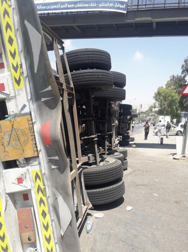 وكالة الناس – ذكرت إدارة الإعلام في الدفاع المدني أن كوادر الإنقاذ والإسعاف في مديرية دفاع مدني البلقاء تعاملت ظهر اليوم مع حادث تدهور تريلا محملة بسيراميك واصطدامها بـ مركبتين في منطقة عين الباشا / نزول صافوط نتج عن الحادث إصابة (7) أشخاص بجروح ورضوض في مختلف أنحاء الجسم .