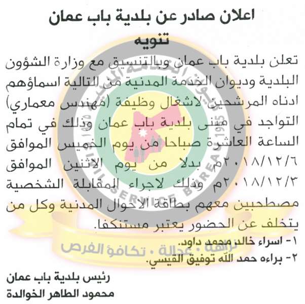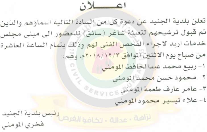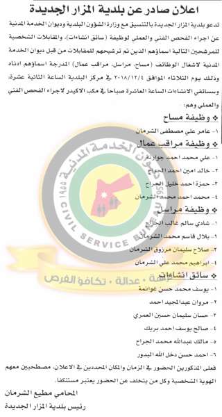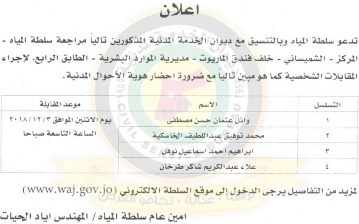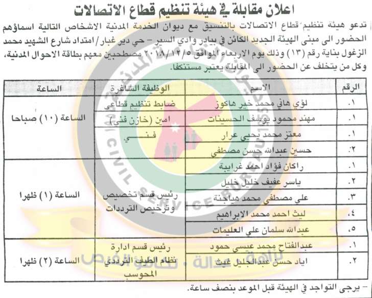 وكالة الناس – دعا ديوان الخدمة المدنية بالتعاون مع مختلف الوزارات والمؤسسات الحكومية، التالية اسماؤهم لاجراء المقابلات الشخصية وعقد الامتحان التنافسي لغايات التعيين.