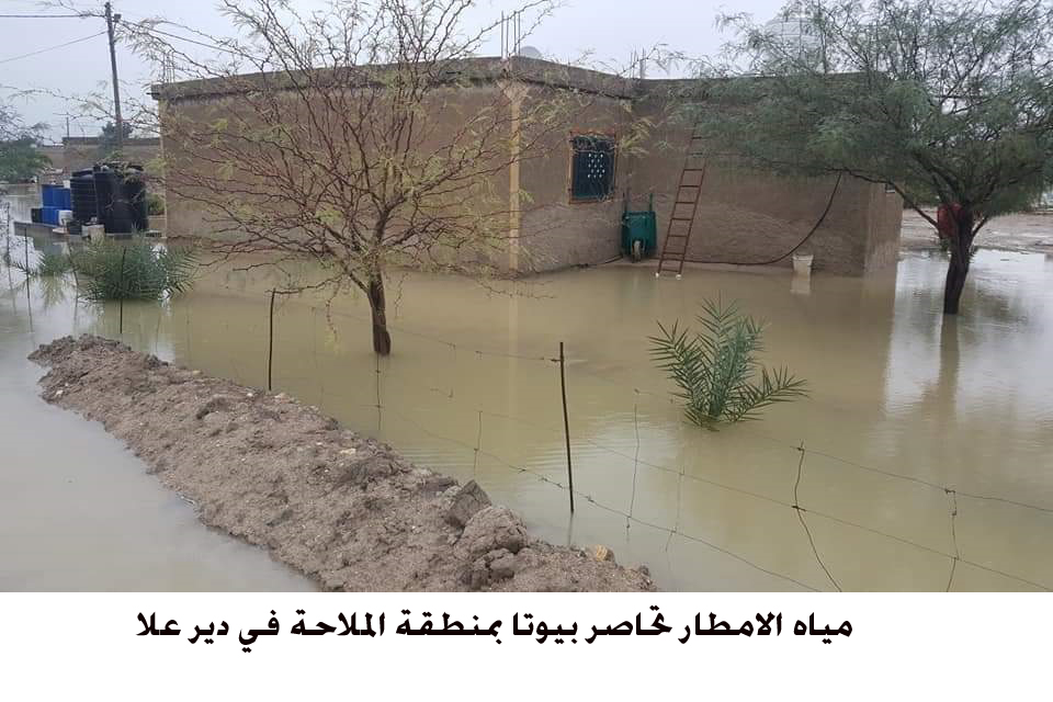 وقال رئيس بلدية دير علا الجديدة مصطفى الشطي ان مياه الامطار الغزيرة حاصرت بعض بيوت منطقة الملاحة وداهمت ساحاتها لوقوع هذه البيوت تحت مستوى الشارع مبينا ان كوادر البلدية ومنذ الصباح الباكر تعمل على شفط المياه وتحويل مجراها.