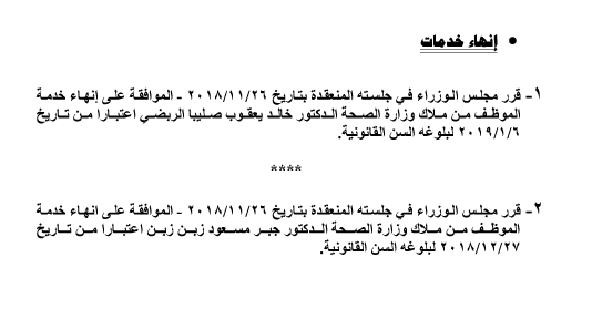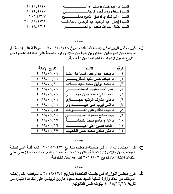 بالاسماء .. احالات الى التقاعد في التربية وانهاء خدمات لموظفين في مختلف الوزارات