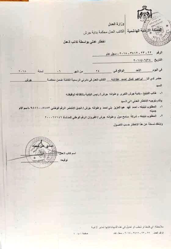 علما أن البلديه وجهت له انذار بلدية و انذار عدلي سابقاً لتصويب اوضاعة و ازالة اسباب المخالفة.