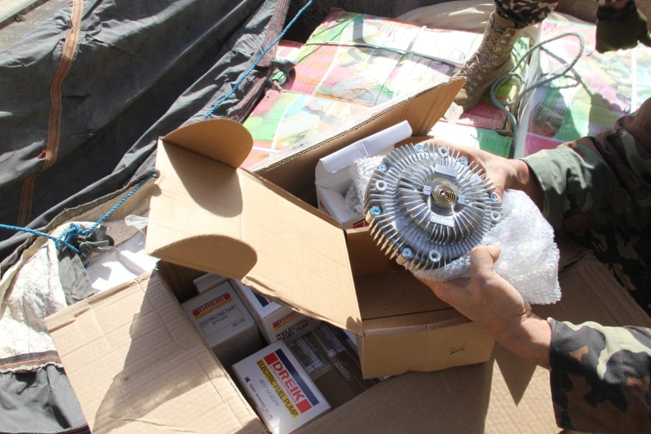 وكالة الناس – تمكنت كوادر دائرة الجمارك العاملة في مديرية مكافحة التهريب من ضبط (قلاب) محمل بالعديد من البضائع المختلفة وذلك أثناء ممارسة عملها الطبيعي على الطريق الصحراوي، وتضمنت المحتويات المضبوطة قطع سيارات جديدة والبسة مختلفة واحذية واكسسوارات وعطور وماكنات حلاقة تحمل ماركات عالمية مختلفة.