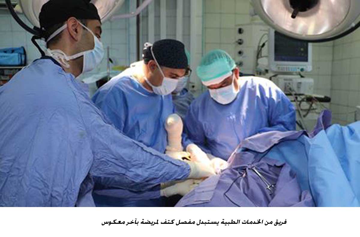 فريق من الخدمات الطبية يستبدل مفصل كتف لمريضة بآخر معكوس