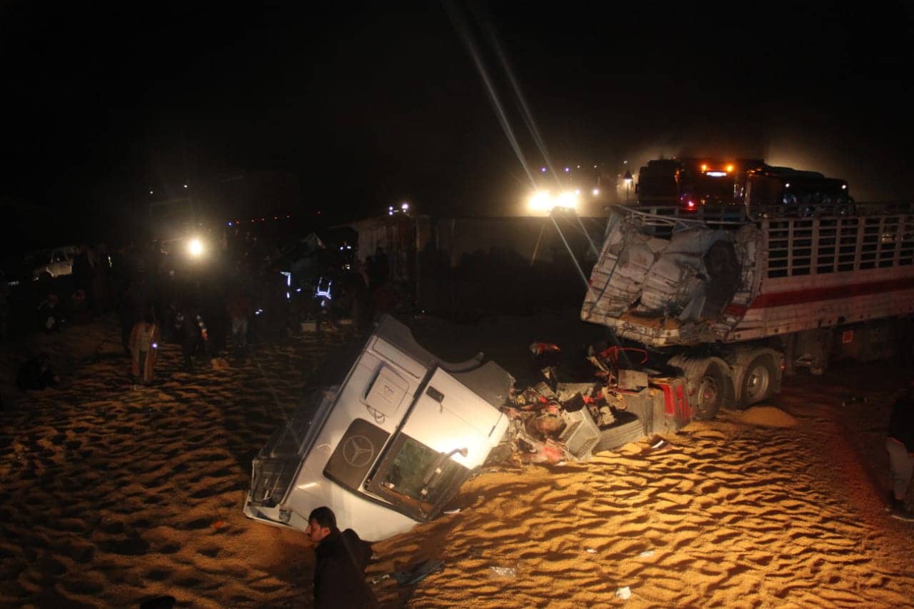 (تحديث) بالصور .. إرتفاع عدد الإصابات إلى 5 بحادث تصادم الشاحنتين في الحسا