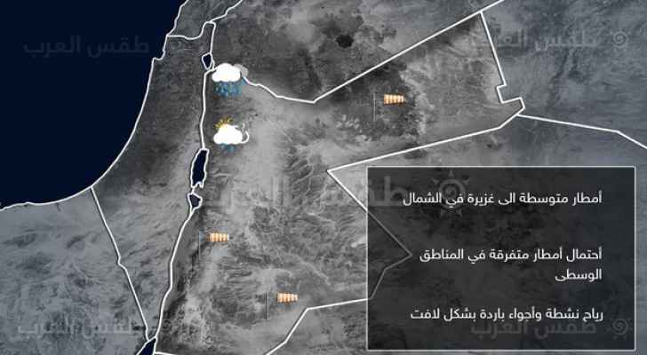وتشير صور الأقمار الاصطناعية الى تكاثر السحب الرعدية على الساحل الفلسطيني هذه الأثناء وتتحرك شرقاً نحو المناطق الوسطى من المملكة تشمل العاصمة عمان، وبالتالي ترتفع فرص الأمطار الرعدية نهار الاثنين، وتكون مصحوبة تساقط زخات البرد فوق المرتفعات.