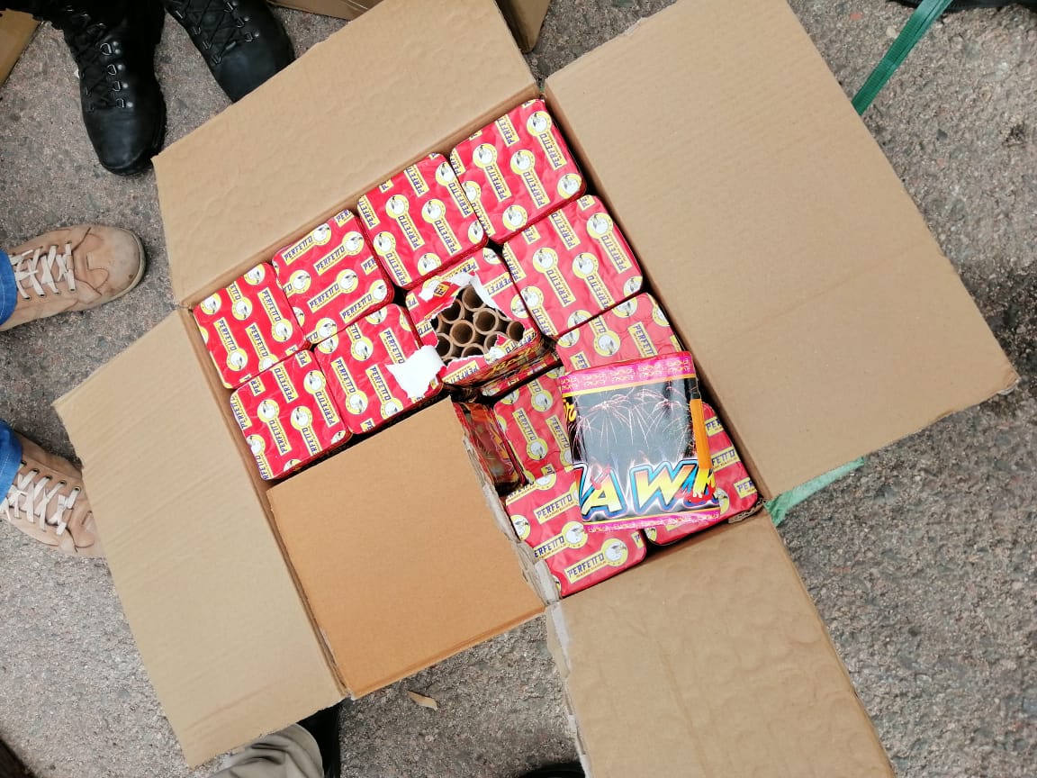 تحتوي على العاب ناریة بكمیات كبیرة تم التصریح عن محتویاتھا (الواح كرتون ورولات