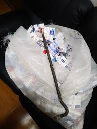والمخدرات وضبط بحوزتھ كیس كبیر بداخلھ كمیة من السجائر التي قام بسرقتھا من داخل