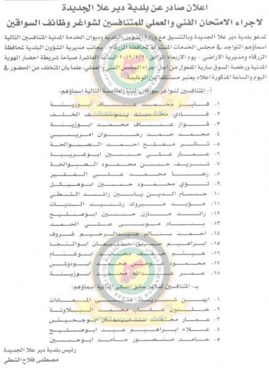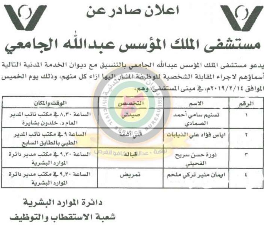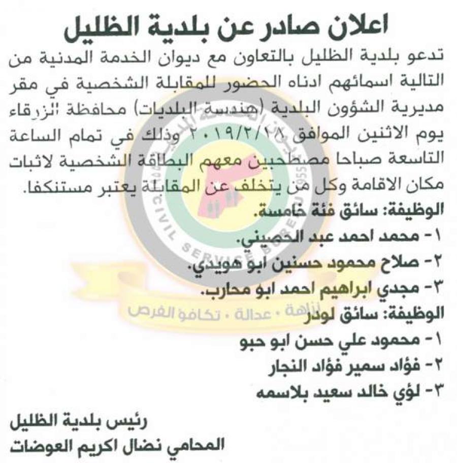 وكالة الناس – دعا ديوان الخدمة المدنية بالتعاون مع مختلف الوزارات والمؤسسات الحكومية، التالية اسماؤهم لاجراء المقابلات الشخصية وعقد الامتحان التنافسي لغايات التعيين.