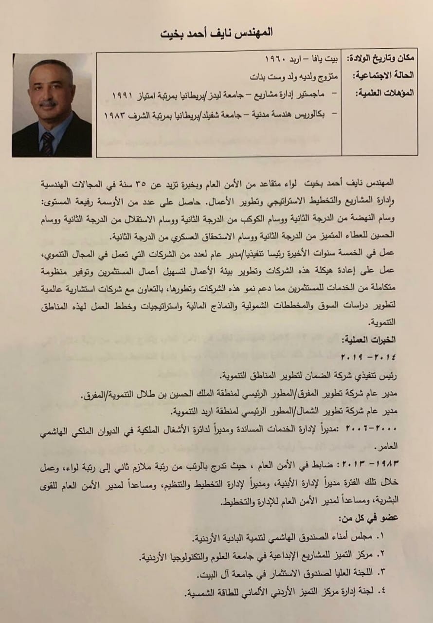 تقول السيرة الذاتية للرجل إنه لواء متقاعد من الامن العام وبخبرة تزيد على 35 سنة في المجالات الهندسية وادارة المشاريع والتخطيط الاستراتيجي.