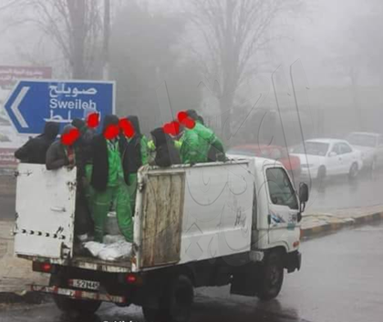 وكالة الناس – انتشرت صورة على مواقع التواصل الاجتماعي اليوم الاربعاء يظهر فيها عددا من عمال الوطن ينقلون بمركبة مكشوفة تعود لامانة عمان تحت شدة الامطار والبرد بأحد شوارع العاصمة.
