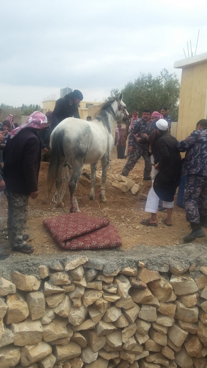إنقاذ حصان سقط داخل حفرة في جرف الدراويش .. صور