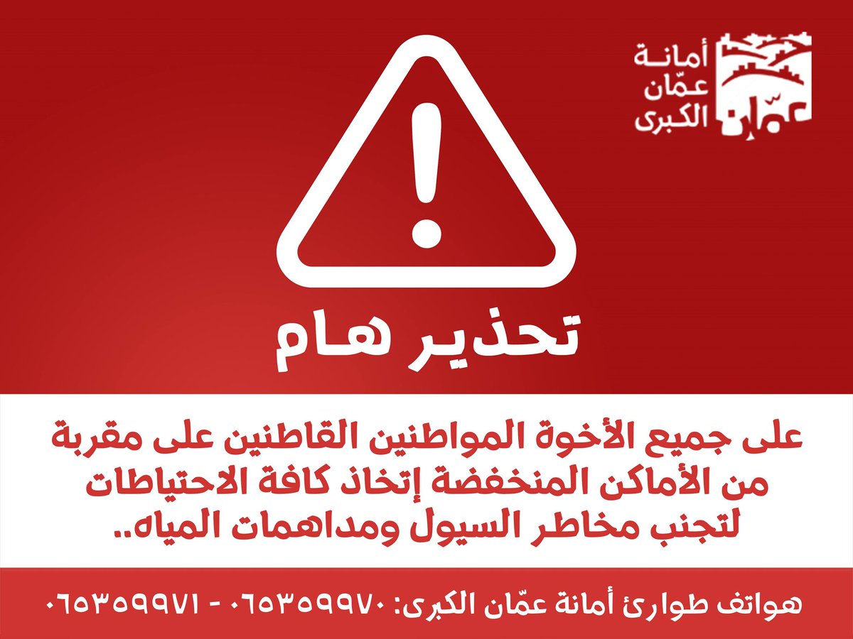 وكالة الناس – تحذير هام من أمانة عمان بما يخص المنخفض الجوي .